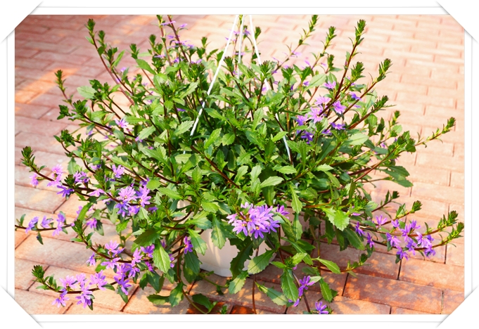Nordisch frisch präsentiert sich die blaublühende Fächerblume in ihrem weißen Blumenampeltopf. Sofern man diesen unter ihren gut 1 Meter langen Trieben und dem Meer an Blüten überhaupt noch sehen kann. Mit diesen fächerförmigen Blüten schmückt sich die Pflanze vom Frühjahr bis zum ersten Frost. Zudem ist die Fächerblume auch noch angenehm pflegeleicht und regentolerant.